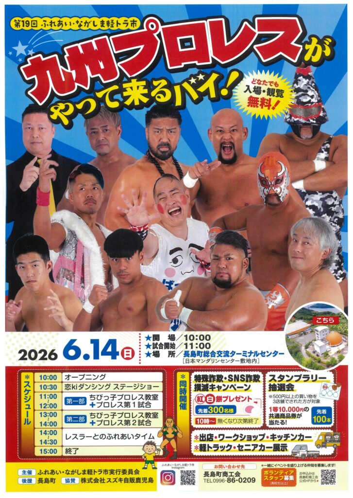 【第19回 ふれあいながしま・軽トラ市】九州プロレスがやって来るバイ!を開催いたします![]()
